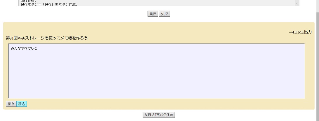 Webストレージを使ってメモ帳を作ろう の動作確認