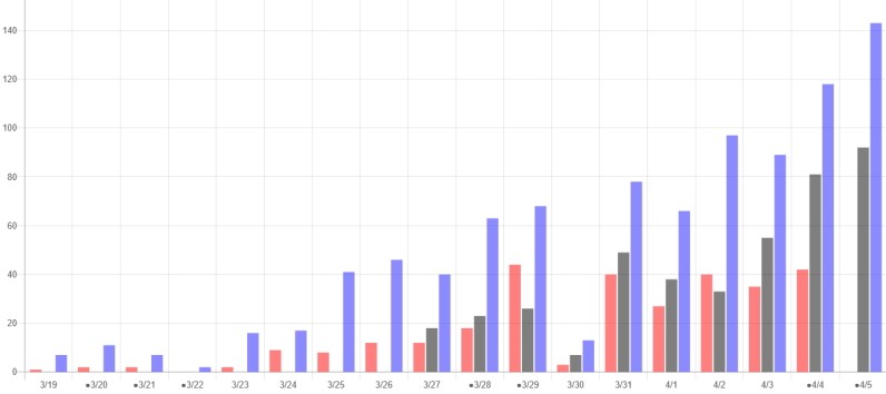 なでしこ3で作られたアプリ名『東京都 日ごとのコロナウイルス患者数』です。