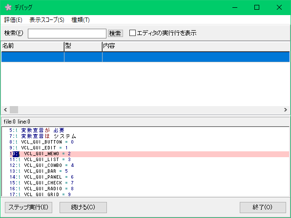 なでしこ1の「デバッグ」命令ででてくるウィンドウで下半分にプログラムが書いてある部分なのですが、